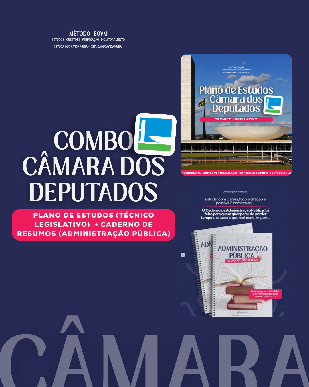 CÂMARA DOS DEPUTADOS – ANALISTA LEGISLATIVO (Combo 3): Plano de Estudos + Vade Mecum Carreiras Administrativas + Caderno de Resumos Administração Pública