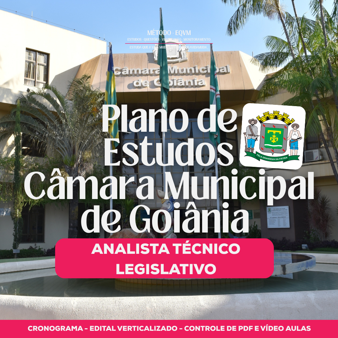 O Plano de Estudos EQVM para Agente Administrativo da Câmara Municipal de Goiânia organiza exatamente: